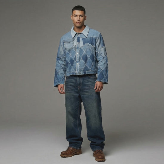 The old weavers knew this. In workshops where fabric was never discarded — only transformed — they understood that denim carried memory in its indigo. Every fade, every crease, every frayed edge was a record of the body that wore it. To cut these memories apart and stitch them into new geometry was not destruction. It was crystallization.