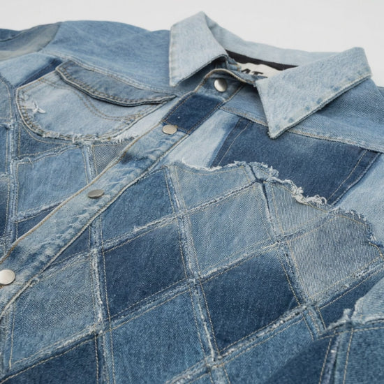 Handmade patchwork denim — each piece reconstructed by hand, one of one.